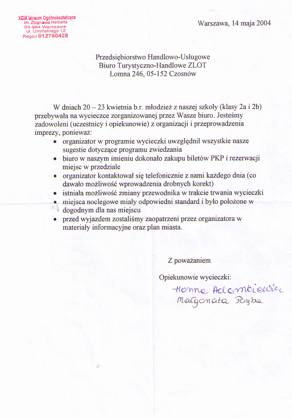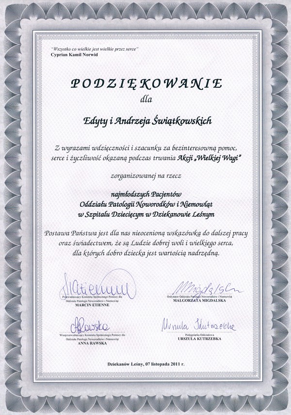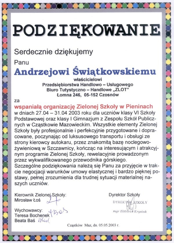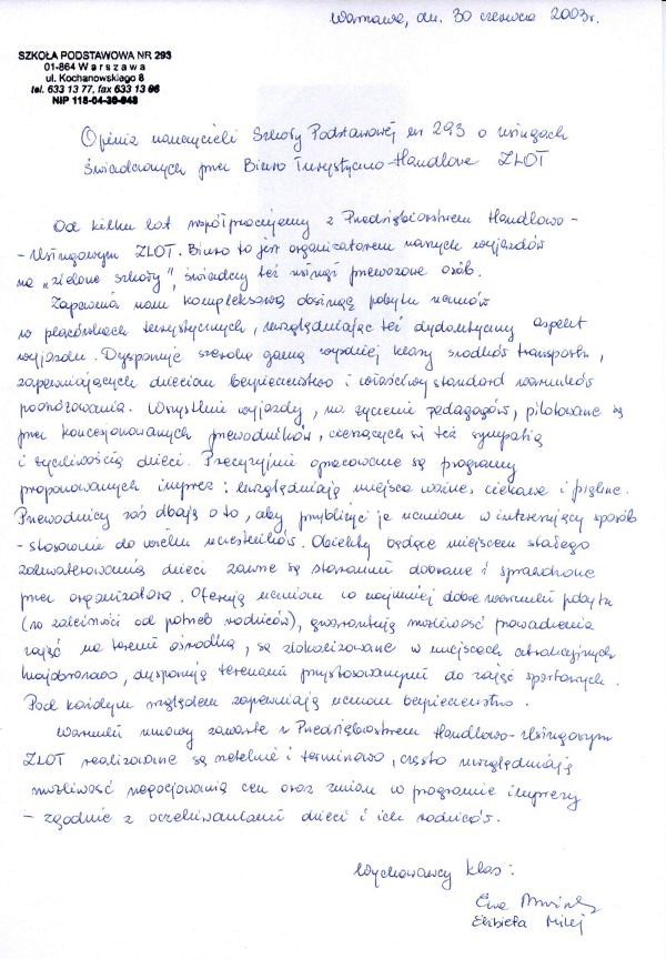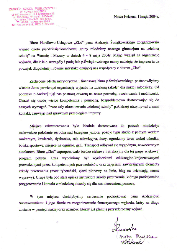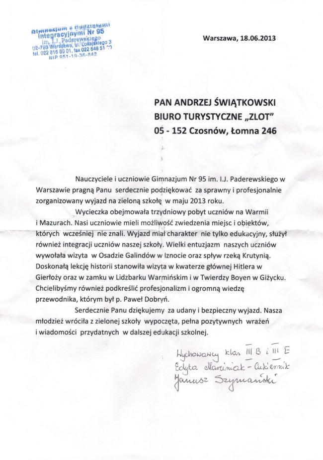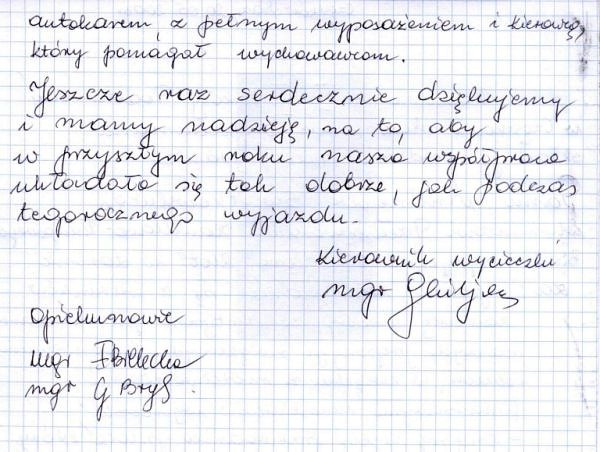 "Gratuluję doskonałej kadry, programu, miejsca. Wszystko było na absolutnie najwyższym poziomie. Jasiu wrócił zachwycony i opowiada wszystkim o tym, co przeżył. " - Iwona