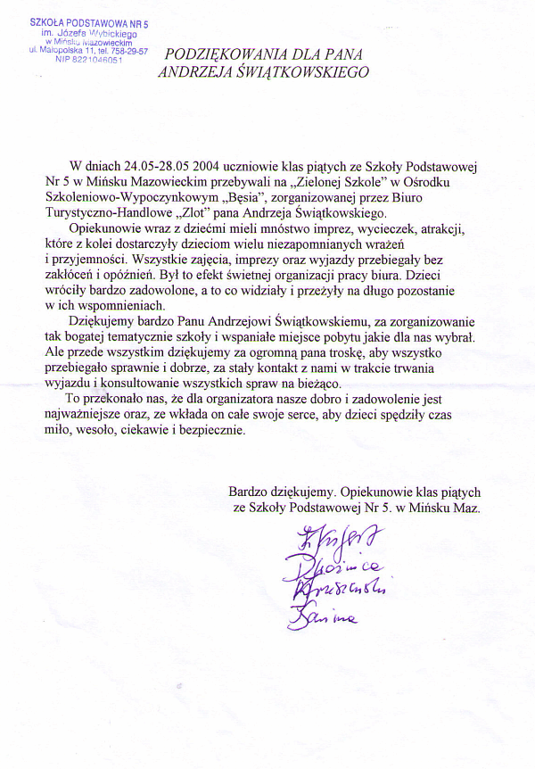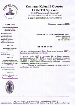 "Dzieci przez cały dzień uczestniczyły w grupowych zajęciach. Nie miały czasu na nudę i bezsensowne przesiadywanie w pokojach. Poleciłam Państwa firmę wielu znajomym, którzy skorzystali z Państwa oferty" - Mama